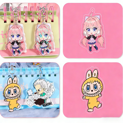Premium personalized acrylic keychains with custom printing for branding and promotional applications.