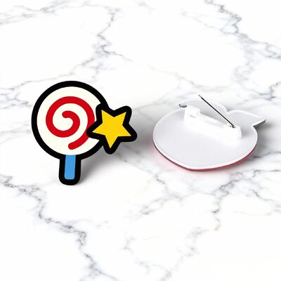 Crea alfileres acrílicos personalizados, insignias de botón y accesorios con logotipos impresos personalizados, diseños de dibujos animados, personajes de anime o nombres.Estos pines versátiles cuentan con soporte magnético para su fijación segura.