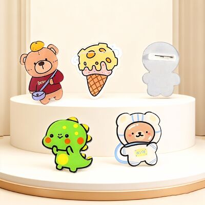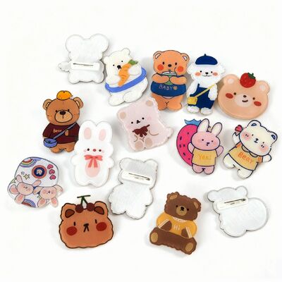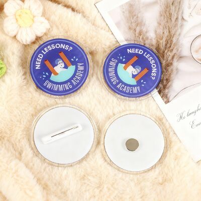 Crea pines acrílicos personalizados para el cabello, insignias de botón y accesorios con logotipos impresos personalizados, diseños de dibujos animados, personajes de anime o nombres. Estos versátiles pines cuentan con un respaldo magnético para una sujeción segura a diversas superficies.