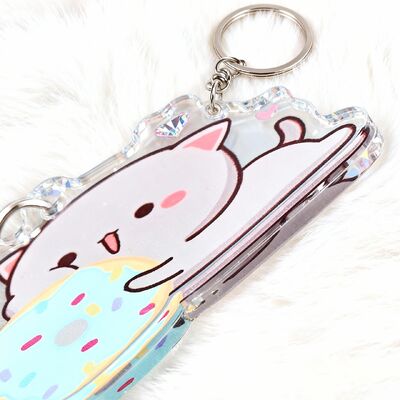 Llavero de plástico acrílico epoxi holográfico personalizado, foto de dibujos animados, moda creativa, accesorios de bolso únicos y decorativos, regalos de uso diario